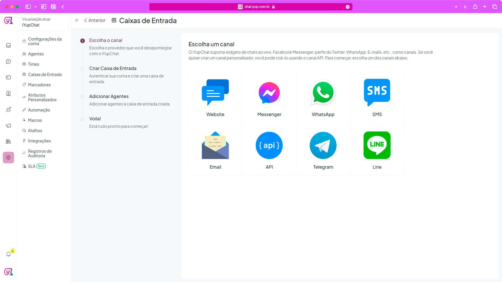 Isso inclui chat ao vivo em seu site, integrações com redes sociais, como Facebook Messenger e Instagram, e até mesmo suporte via e-mail para manter todas as suas conversas em um único painel, facilitando o atendimento aos clientes.